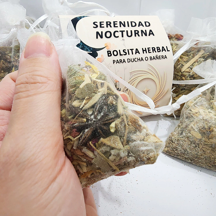 Uso seguro: Estas bolsitas están creadas exclusivamente para uso tópico (piel). No son aptas para consumo, ya que la combinación de hierbas puede ser pesada para el estómago.